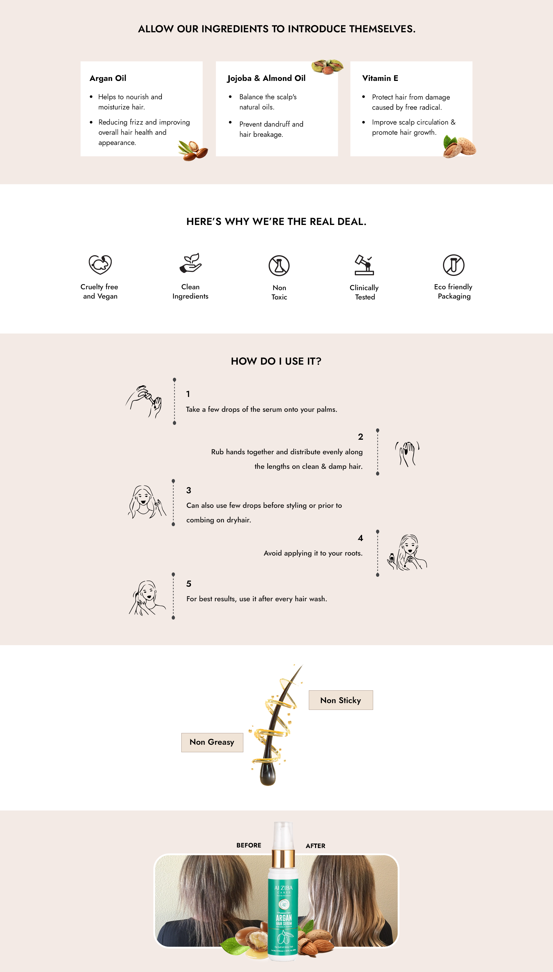 Experience the ultimate hair transformation with ALZIBA CARES Argan Hair Serum, your one-stop solution for shiny, so, and healthy hair!