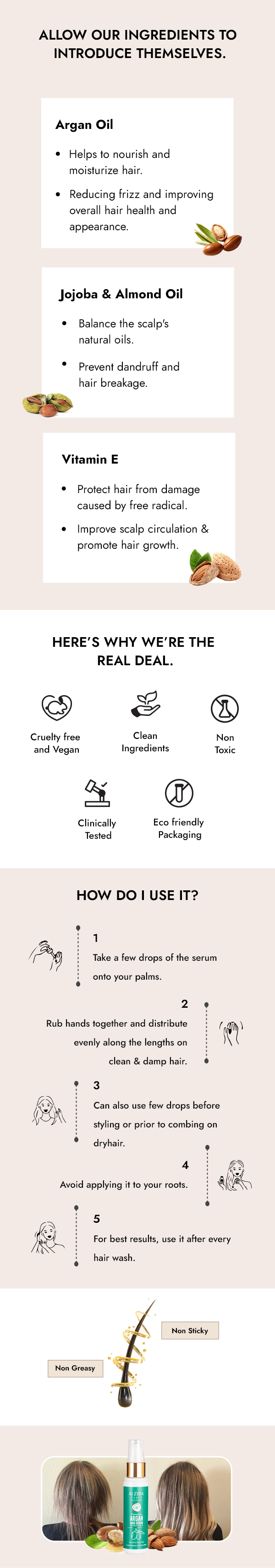 ALZIBA CARES Moroccan Argan Hair Serum with Jojoba Oil, Almond Oil and Vitamin E | For Frizz free, Shiny, soft and Nourished Hair | 50 ML | For Men and Women & all Hair Types