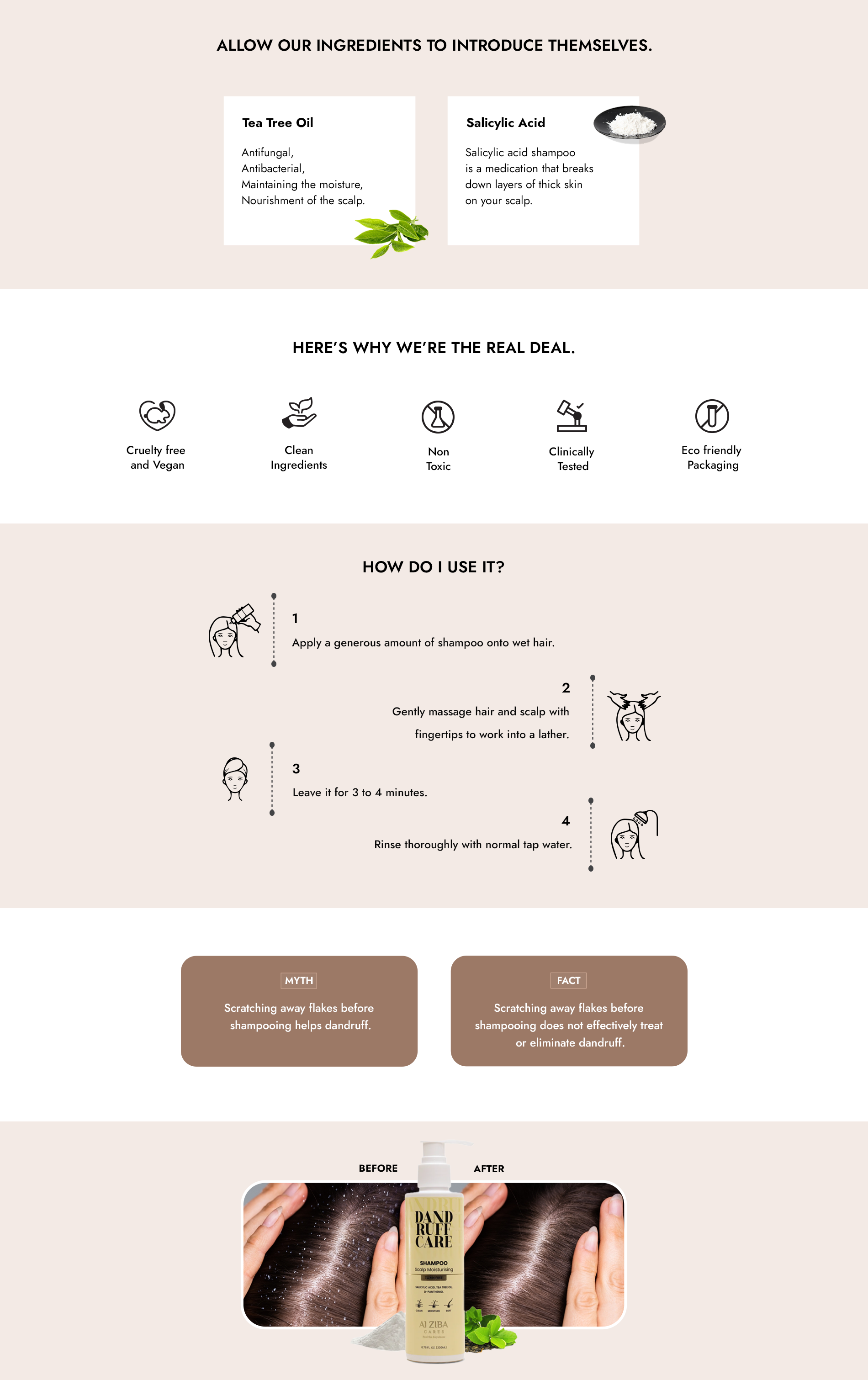 ALZIBA CARES Dandruff Care Scalp Moisturising Shampoo with Salicylic Acid,Tea Tree and D-Panthenol | for Dandruff Clean, Scalp Moisturise and Soft Hair | 200 ML | for Men and Women, All Season & all Hair Types