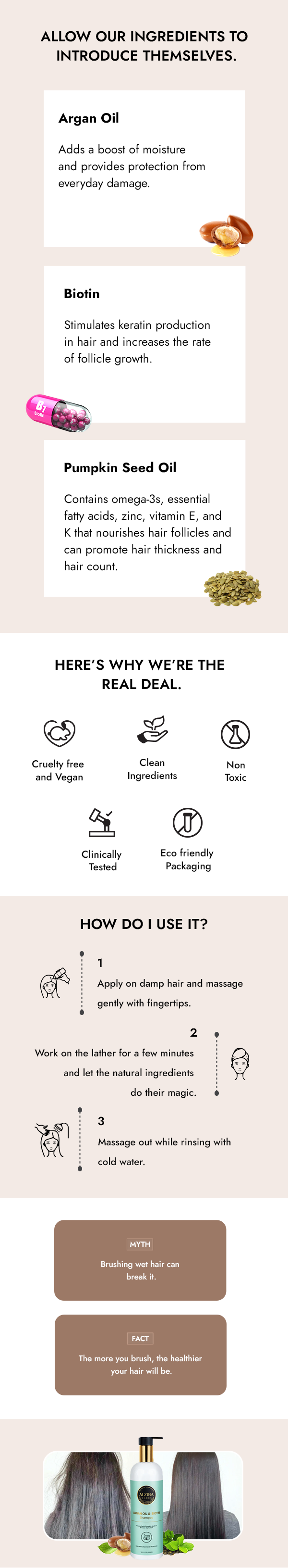 ALZIBA CARES Argan Oil and Biotin Shampoo with Pumpkin Seed, Green Tea, Coconut Oil and Vitamin E | For Hair Moisturisation & Protection, Hair Growth | 500 ML | for Men and Women, All Season & all Hair Types