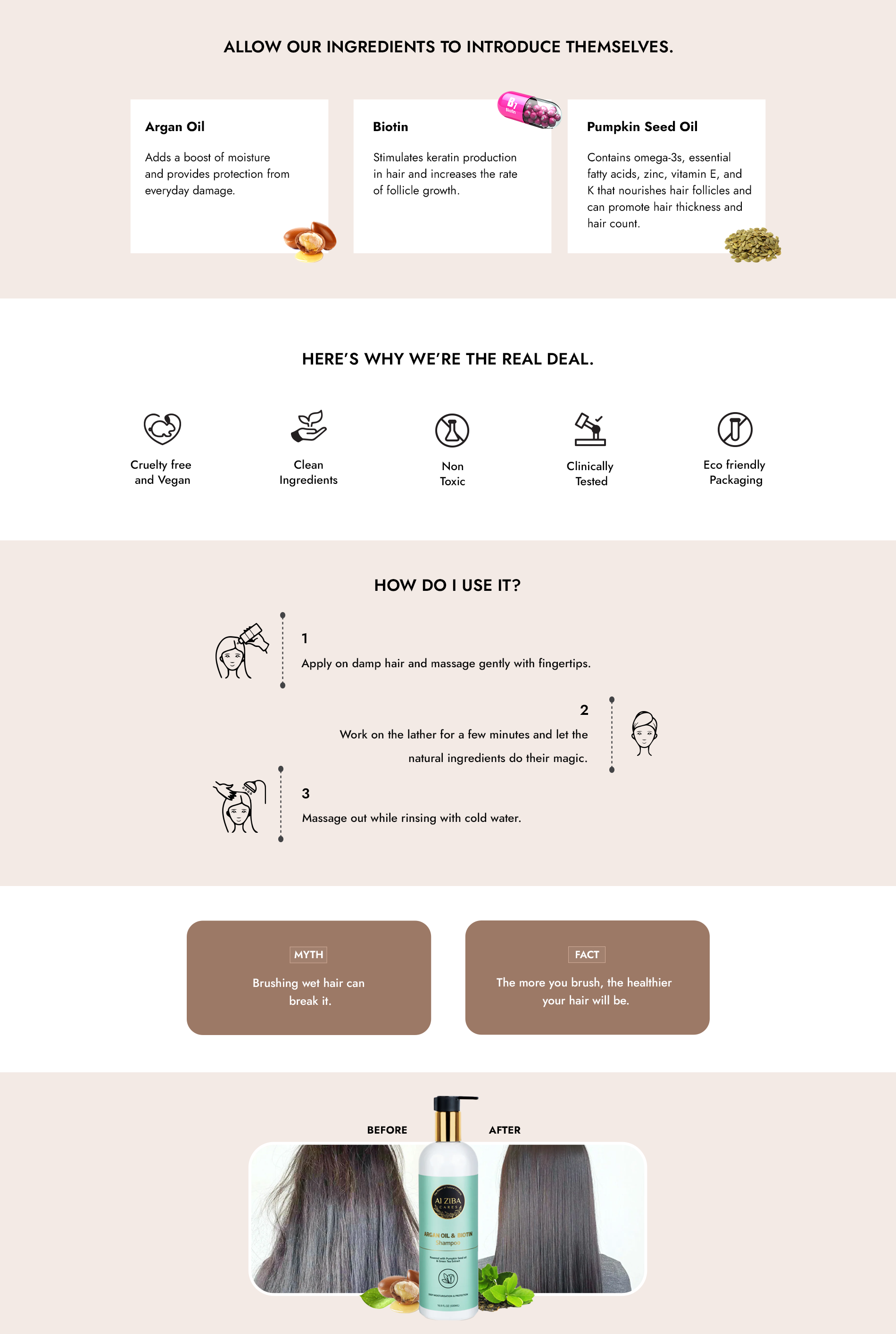 The Argan Oil and Biotin Shampoo offers a natural solution for revitalizing hair, by providing intense hydration, nourishment, and protection. Its sulfate-free, paraben-free, formula makes it safe for daily use.