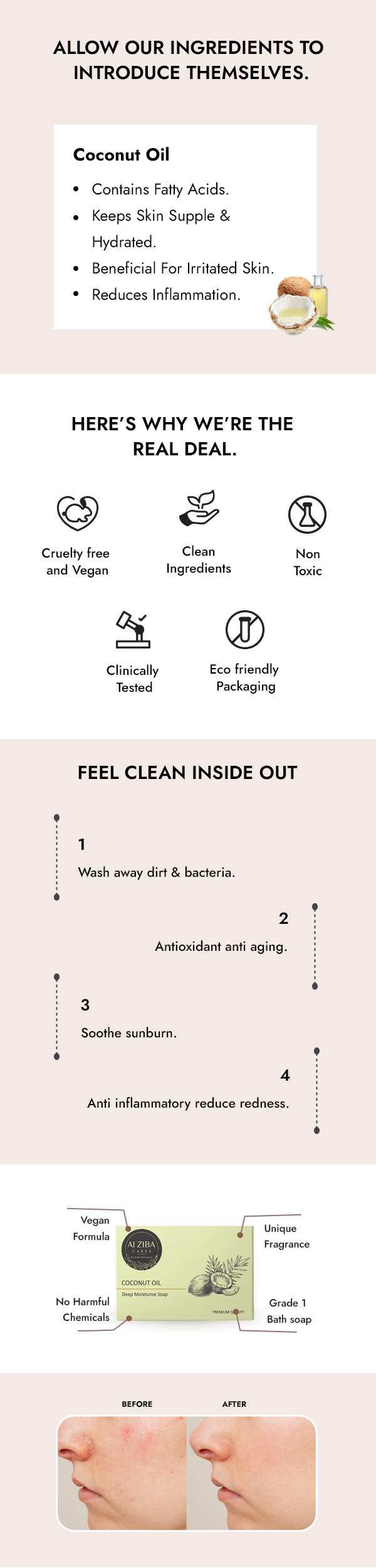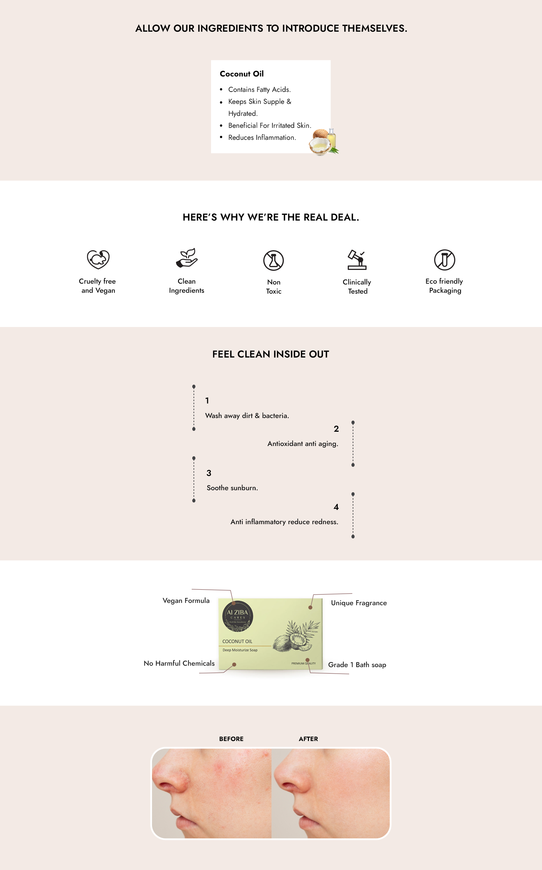 ALZIBA CARES Coconut Soap (Pack of 4) with Coconut Oil, Coconut Extracts and Glycerine | For Deep Moisturization and Hydrated Skin | High TFM (Grade 1), Vegan | For all Skin Types | 100G * 4 Soap Bar
